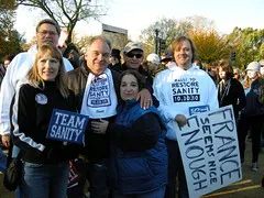 Folks from Bristol who usually are working very hard for Democrats and sane politicians locally, regionally, state, and federal took a break this past weekend to attend the Rally to Restore Sanity and/or Fear in Washington, DC. In this photo are Carl, Richard, Catherine, Terry, Aviva, and Glen. Sarah is behind the camera, and Sherry and Barry are somewhere in the crowd.