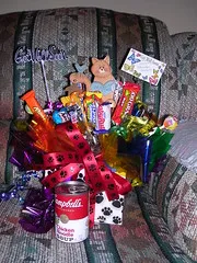 As I have been in treatment for breast cancer, many people have sent me cards, letters, and gifts of flowers, books, candles, lotions, and candy — all very appreciated. The several entries today are photographs of some of the flowers. This one came from the students in the department where I work. Needless to say, these sorts of flowers are sort-lived!